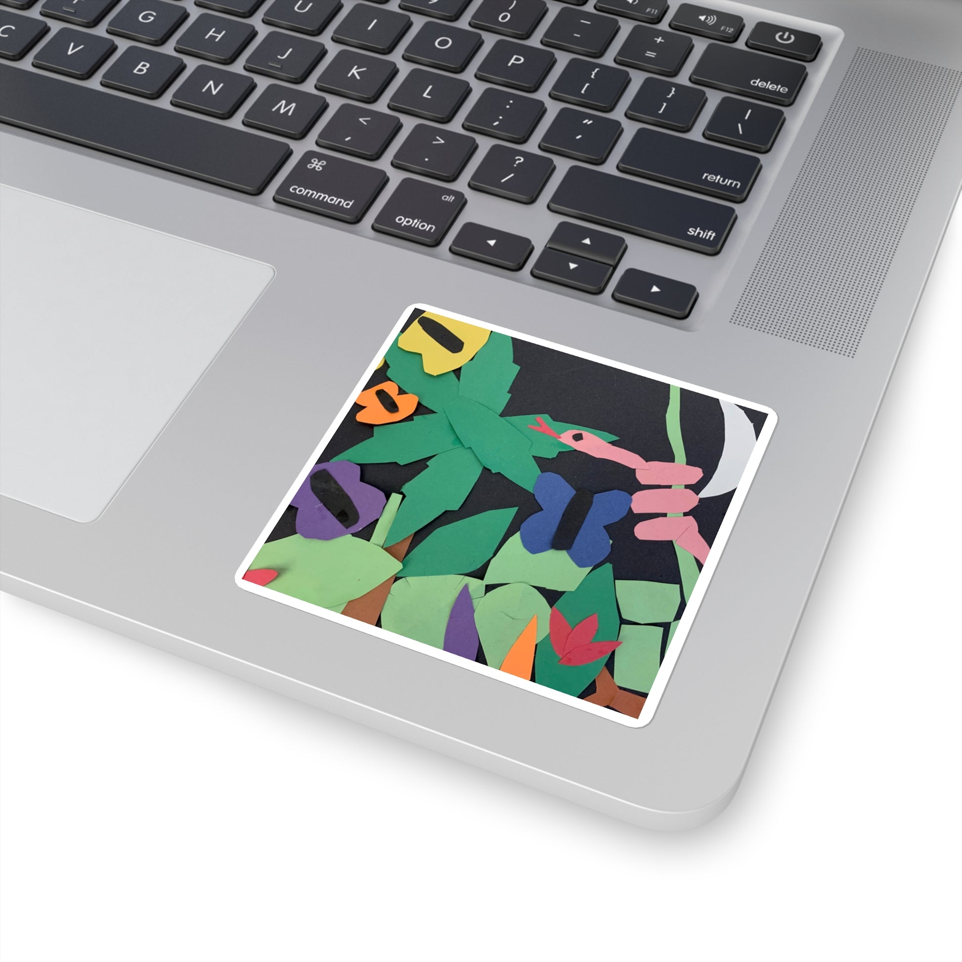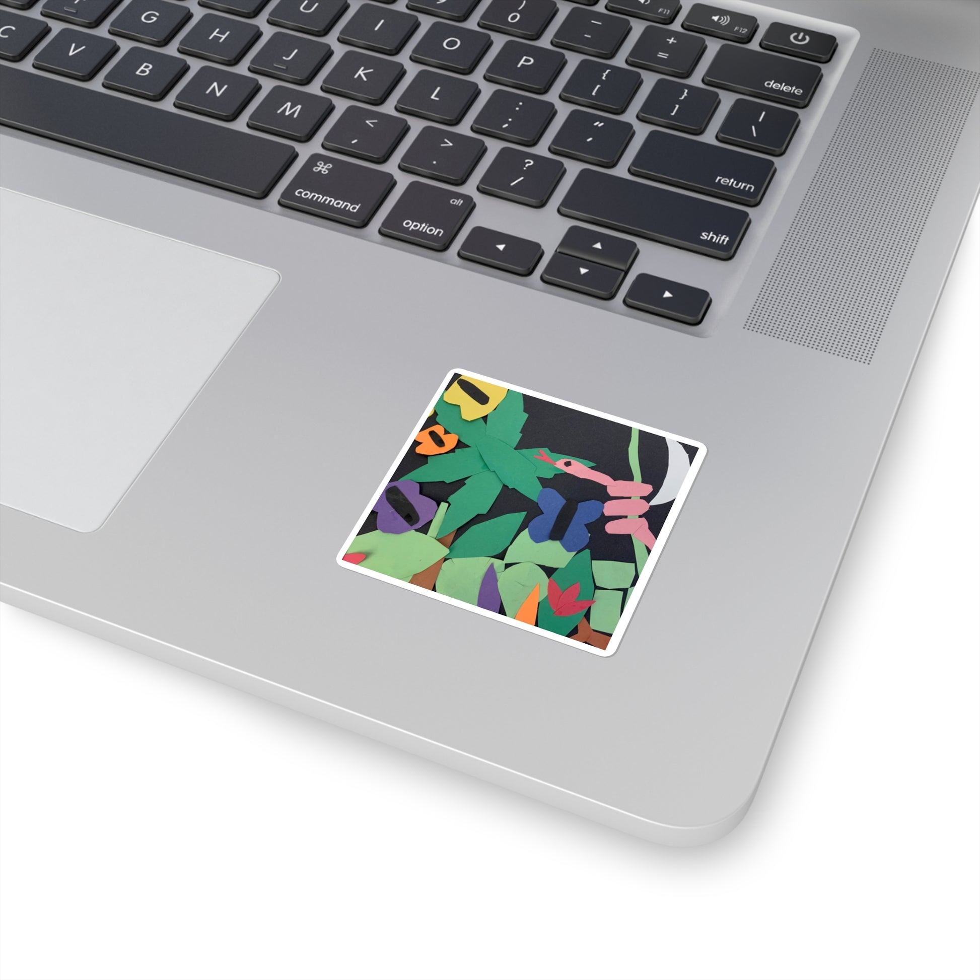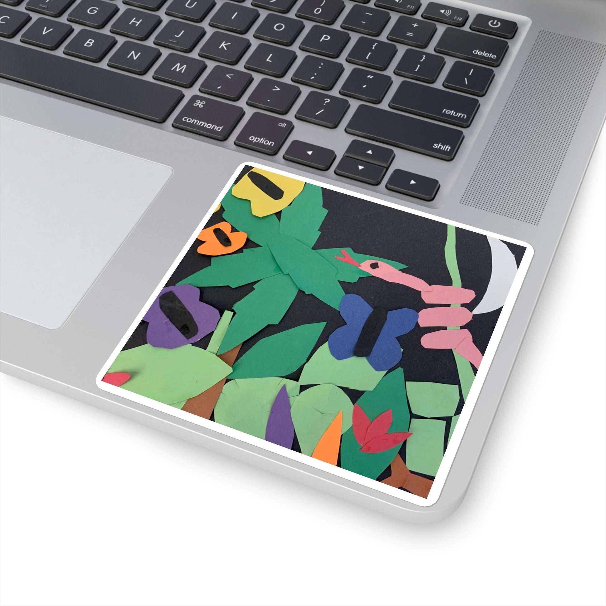 A vibrant, square vinyl sticker that brings playful collage art to everyday surfaces. The glossy finish makes colors pop — rich greens, deep blacks, and bright accents — while a durable vinyl face and strong 3M acrylic backing hold up to regular indoor use. Choose from four sizes to fit laptops, journals, water-bottle sleeves, or planners. The sticker’s scratch-resistant surface keeps the design lively, and eco-solvent inks deliver extra-bright, long-lasting color without harsh chemicals. Note: designed for indoor display and not waterproof.